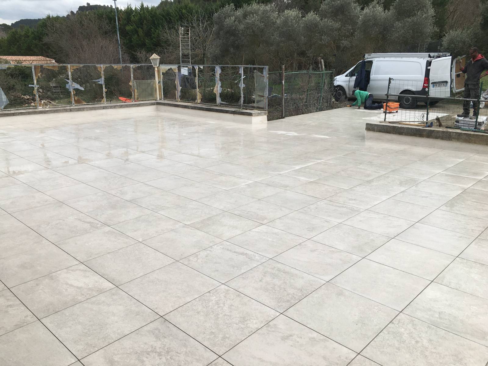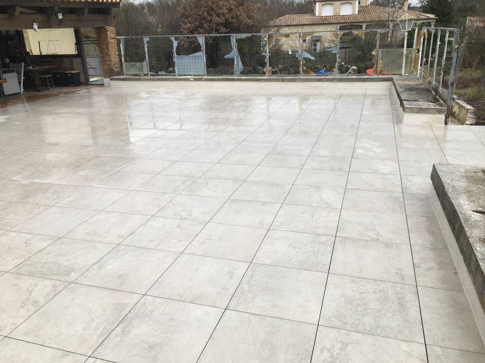 Description des travaux réaliser - étancheitè du terrasse a Bouc Bel Air . Les travaux ont consister a refaire l'étancheitè d'une terrasse afin de prévenir les infiltrations d'eau et assurer la pérennité de la structure . Détail des interventions : Dépose de la chappe existante et de l 'ancien carrelage, afin de repartir sur une base saine .Travaux d'étancheitè : Mise en place d'un système d'étancheitè de type Soprema bicouche sous protection lourde préformant pour empêcher toutes infiltration d'eau et protéger le bâti .Finition : pose de dalles grès cérame sur plots ayant une finition esthétique et durable ,tout en facilitant l'évacuation de l'eau de pluie .Pourquoi ces travaux ? l ancienne étanchéité de la terrasse était dégradé ,ce qui entrainait des infiltrations d'eau susceptible d'endommager la structure d et de provoquer des désordres (humidité, fissures,moississures, ) la solution mise en place une protection optimale tout en offrant un rendu esthétique moderne et facile d'entretien .