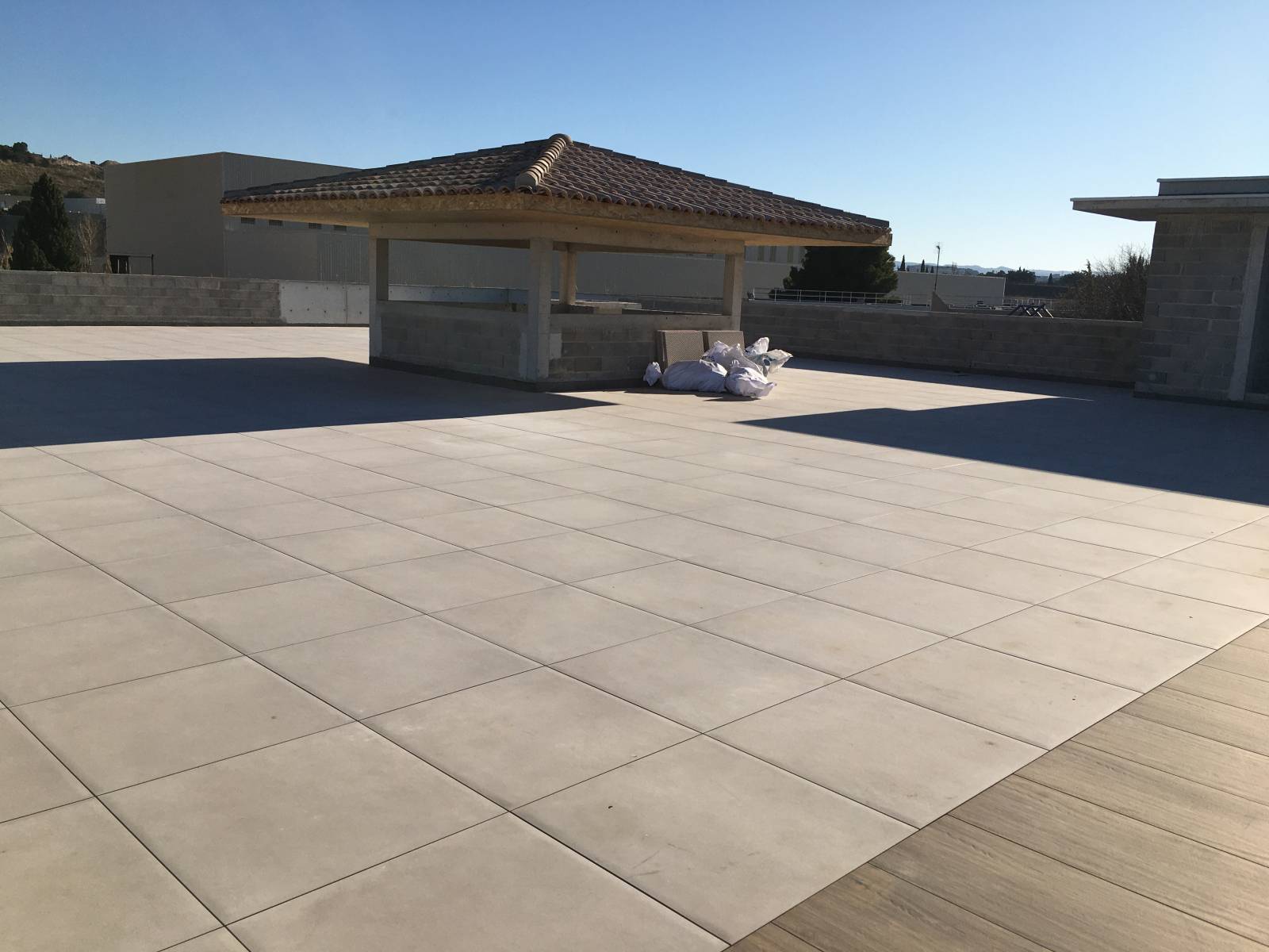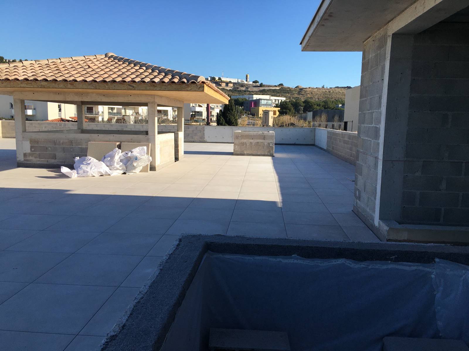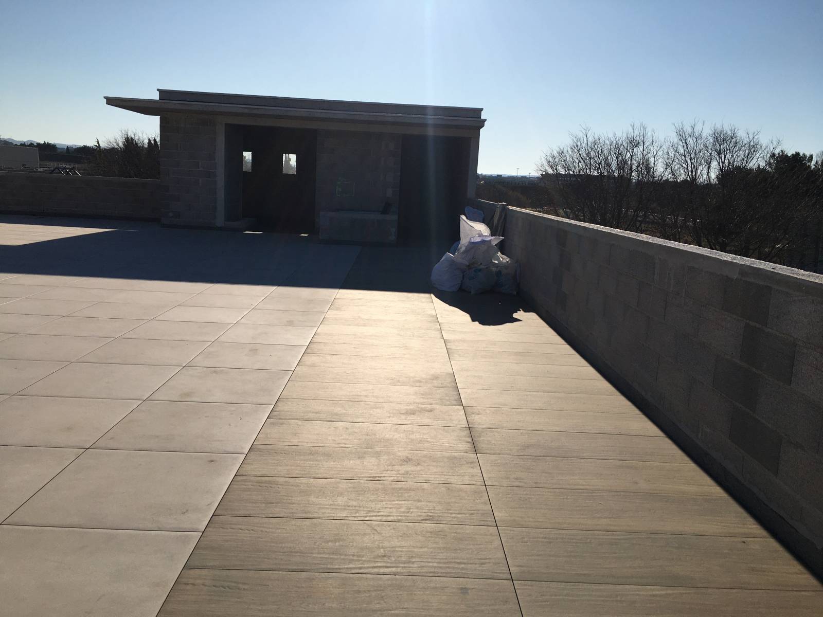 L'entreprise LCB a réaliser sur la commune de Vitrolles dans les bouche du Rhône un complexe d'étancheitè ,isolation, dalles sur plots ( en grès cérame 80*80),bande de rive etc... . Tous d'abord nous avons réaliser l'étancheitè de deux terrasses ( vernis d'impression a froid ,pare vapeur, équerre de renfort ,isolation 100 mn polyuréthane ,étancheitè bicouche sous protection lourde de Soprema (marque française )et pour les relevés en périphérie (équerre de renfort + flaching de Soprema ),puis ensuite nous avons posée des dalles de dimension 80*80 sur plots réglable y comprit coupe etc... .Notre client était très satisfait du rendu de sa terrasse ( rooftop ) voir photos .Si vous aussi vous souhaiter que nous réalisons votre futur terrasse n'hésiter pas a consulter l'entreprise LCB étancheitè .